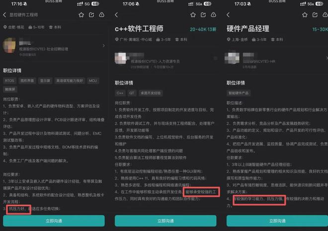 视源股份多个岗位要求员工“抗压能力强,能够承受较大的工作压力”