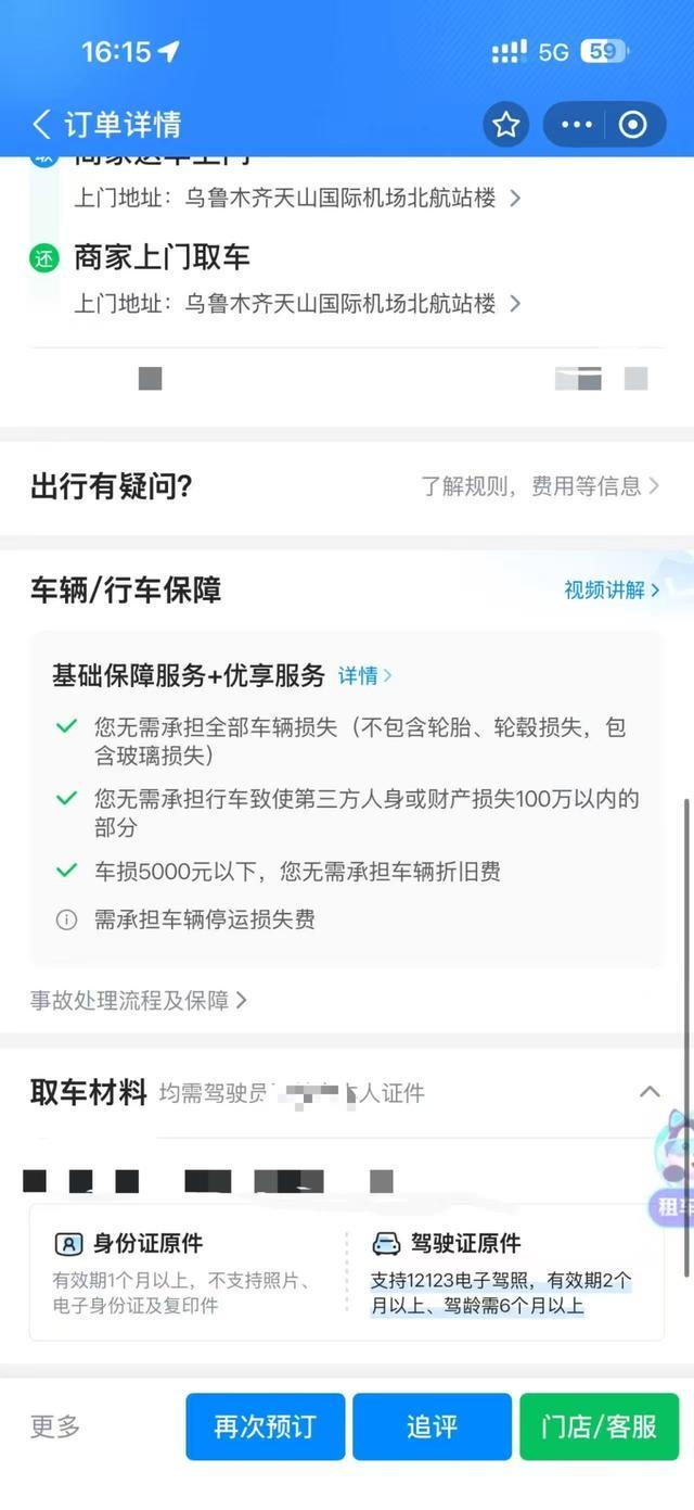 据许先生介绍,2025年12月22日,他通过哈啰租车平台在新疆乌鲁木齐租用一台黑色坦克300,平台订单显示的车牌号以“川G”开头。然而,12月24日抵达乌鲁木齐天山机场取车时,徐先生发现车行实际提供的是一辆车牌号为“川A”的橘色坦克300,颜色与车牌号均与订单信息不符。