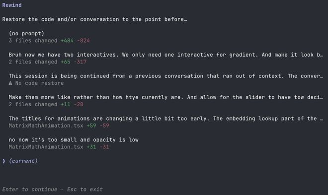 键盘快捷键:Esc+Esc是后悔药(回滚),Ctrl+R是时光机(搜索历史),能让你在聊天里直接跑bash命令。