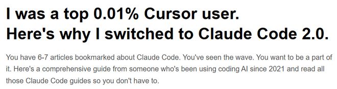 然而,在Claude Code 2.0发布后,他做出了一个令所有人咋舌的决定:放弃Cursor,全面迁移至Claude Code。