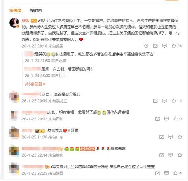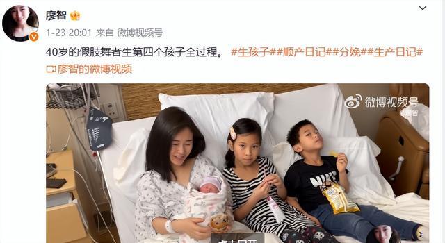 1月23日,廖智也在其他社交平台发文称,40岁的假肢舞者生第四个孩子全过程,分享了自己的生产日记。
