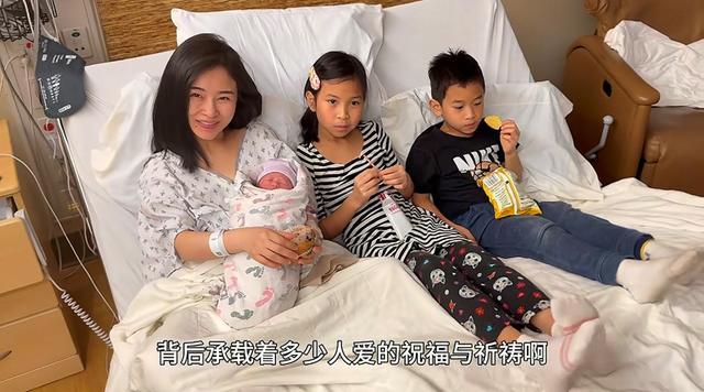1月23日,在廖智发布的视频中,她抱着刚出生的婴儿,身旁是自己的一儿一女,眼里的喜悦像要溢出来了。
