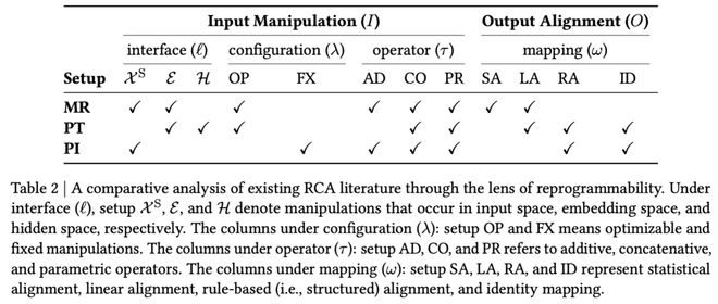 新兴适配技术(基于模型可重编程性的适配,reprogrammability-centric adaptation, RCA)则采用了一种不同的理念:保持模型参数冻结,转而策略性地修改任务呈现的方式,通过精心设计下游任务的输入变换(包括模型输入(input)、提示(prompt)或上下文信息(context)),以及模型输出对齐方式(output)来使其兼容下游任务,使用极少量可训练参数(甚至完全不引入新参数),在不触及模型权重的情况下「重编程」预训练模型的行为。