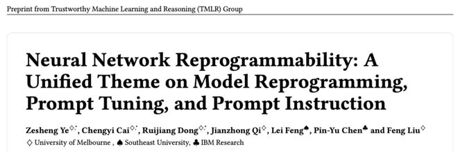 近期,来自墨尔本大学可信赖机器学习与推理(TMLR)研究小组和 IBM AI 研究所的研究者系统性地提出了「神经网络可重编程性(Neural Network Reprogrammability)」这一统一主题,在最近的一篇 survey 中,将模型重编程,Prompt Tuning、Prompt Instruction 和 In-context Learning 纳入同一分析框架,从操纵位置、操纵类型、操纵算子和输出对齐四个维度进行了系统梳理与对比。同时,该团队也在AAAI 2026上带来同名 Tutorial,帮助研究者与工程实践者全面理解这一正在重塑模型使用范式的关键能力。