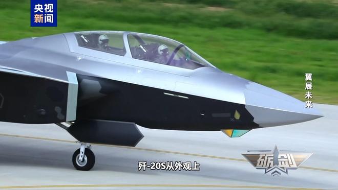 歼-20S从外观上与歼-20相比加长了座舱,增加了一名飞行员