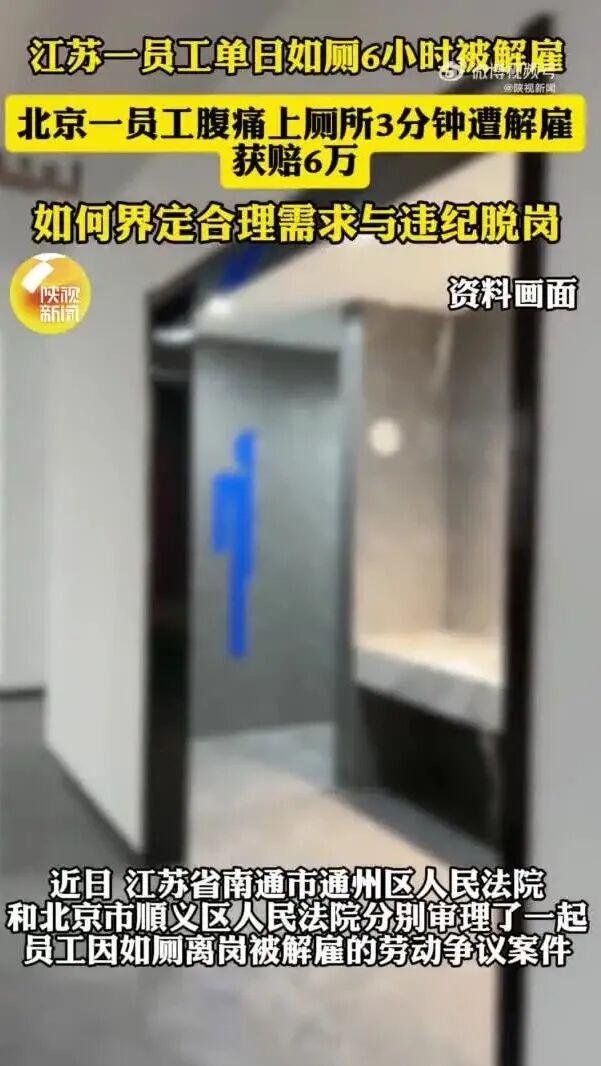 近日,江苏省南通市通州区人民法院和北京市顺义区人民法院分别审理了一起员工因如厕离岗被解雇的劳动争议案件。