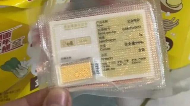 马女士告诉记者,她来自河南洛阳,1月25日,她和闺蜜一同乘火车前往开封旅游,由于上车前她们没有吃午饭,抵达开封时已是下午四时许,为了图方便省时,俩人下车后便在一家生鲜超市买了两桶泡面,马女士称,她打开桶面准备用开水泡面时,发现桶面里有1克金条,金条上还印有品牌名字。