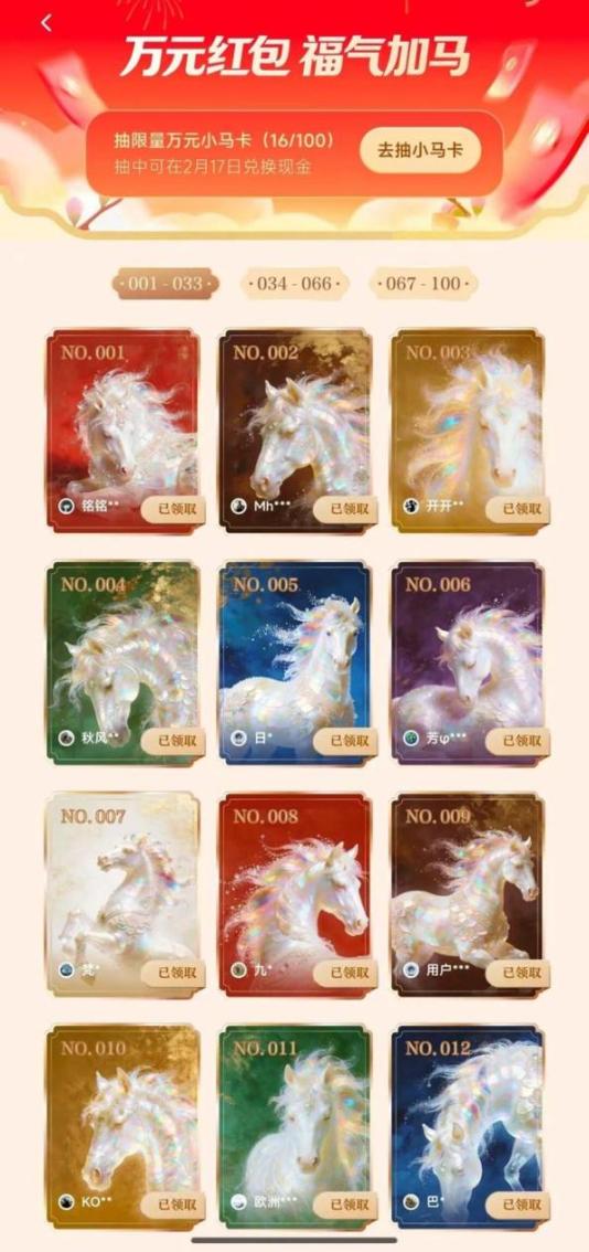 截至发稿,最具诱惑力的“万元现金小马卡”已被翻牌16张。
