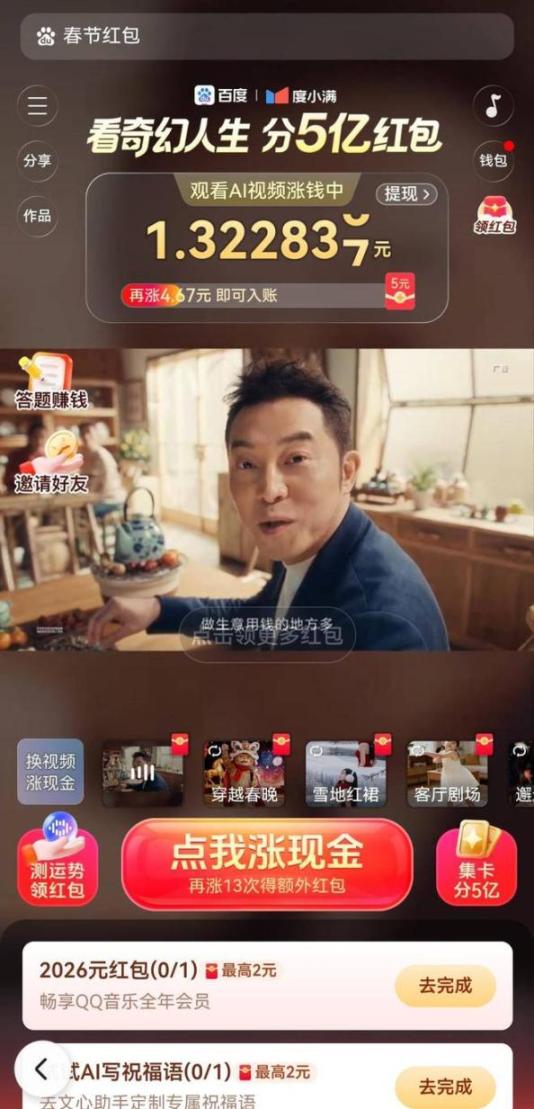 除了腾讯,百度也发布了文心助手关于春节现金红包活动的通知:自1月26日至3月12日,用户在百度APP使用文心助手,有机会瓜分5亿元现金红包,最高可获得1万元奖励。