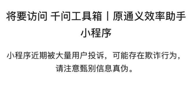 可惜,这边消息刚捂热,另一边就出了糟心事。有网友晒出截图,图片显示打开千问工具箱小程序时,微信弹出了风险提示,就算点击继续访问,也只能发朋友圈,压根没法分享给微信好友和群聊。虽然目前官方尚无回应,但小雷想说的是,无论什么链接,咱平时点击的时候都多看两眼。毕竟当 AI 开始频繁介入支付、交易等敏感场景的时候,咱的安全意识也得跟上。