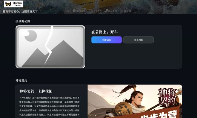 在原著与剧集中,主人公裴谦创立的腾达游戏,凭借《孤独的公路》与《神将契约》两款产品,奠定了其商业传奇的基石。它们不仅是推动故事的关键,也成为观众与读者津津乐道的经典。如今,二者也跨越次元壁,来到现实。2月2日,阅文在为“腾达游戏”设立的特殊官网上,开启了同名产品的用户共创和测试,以创新性的跨界联动实验,助力剧集和原著的破圈传播。在《孤独的公路》中,体验者只需左右滑动,即可控制赛车在蜿蜒的沙漠公路上行驶,主打“极简操作+极难挑战”的反差。《神将契约》则属于益智类Rougelike卡牌产品,主打“神将牌型+策略构筑+Rougelike+数值爆发”。至此,原著中的精彩内容,通过可操作、可挑战的形态,在真实世界中延续。