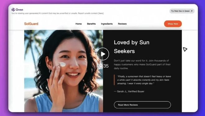 Qwen3.5 可以协助进行网页开发,尤其在构建网页和设计用户界面等前端任务方面表现出色。