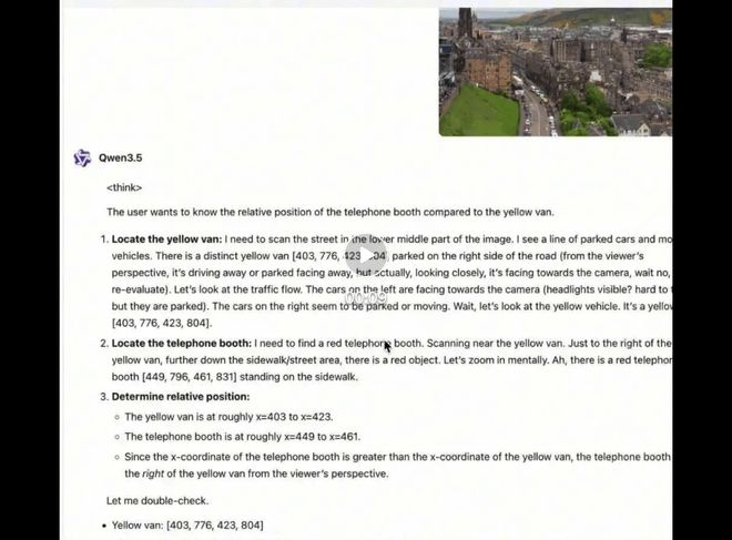 借助对图像像素级位置信息的建模,Qwen3.5 在物体计数、相对位置判断、空间关系描述等任务中表现更准确。