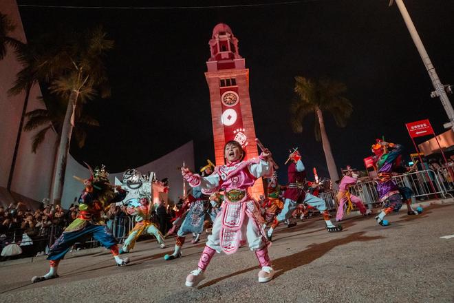 如今,这个“氛围组”成员把年味带到更多的地方。正月初一的香港,当花车缓缓驶过广东道,46支队伍的表演精彩纷呈,人们的目光被一个6岁的广东女孩吸引。个子小小的她挥动双槌,伴随鼓点腾挪跳跃。她的身后,是来自潮汕的英歌队队员,他们脸涂油彩,舞步如风,共同构成一幅水浒好汉的生动群像。