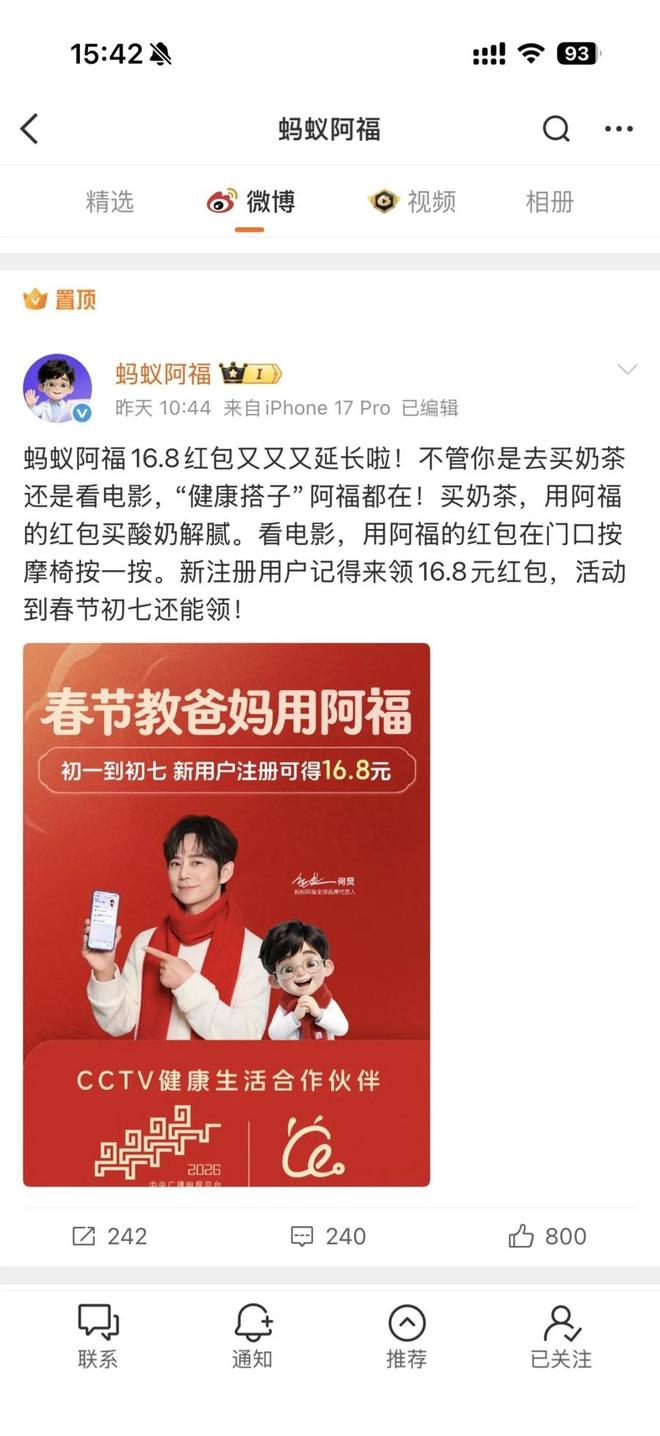 拜年提醒!蚂蚁阿福16.8元红包,初七才截止!