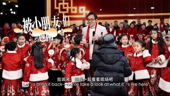 今年春晚,成龙出现在义乌分会场,身边都是小朋友,还有不少国际友人