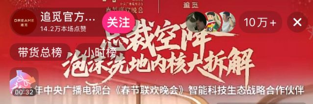 除夕当晚,追觅在抖音、京东、天猫的直播间与春晚同步开播。主播们不再只是叫卖,而是化身“春晚同款解读官”。当电视上出现S60 Pro扫地机的镜头时,直播间里立刻弹出链接,并配上“春晚同款清洁神器”的醒目字样。