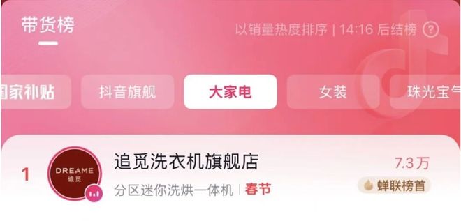 在此协同增长效应下,抖音平台上,追觅冰箱、空调、洗衣机等大家电销售额普遍实现3—5倍增长,多个直播间点赞突破百万。以追觅洗衣机为例,不仅登顶抖音大家电带货榜第一,总裁专场直播GMV更是同时在线人数峰值达到18万。