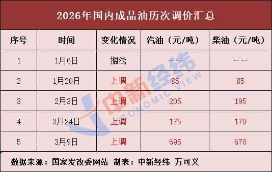 今年以来,国内油价已经历五轮调价窗口,总体格局为“四涨一搁浅”(制图/中新经纬)