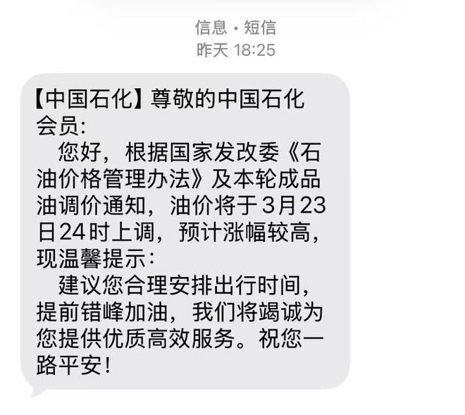 央视新闻公众号消息,按照成品油调价时间表,3月23日24时,国内成品油零售限价将迎来新一轮调整时间点。不少网友表示,收到了油价上调的通知短信。机构跟踪的最新国际原油价格变动状况预测数据显示,本轮成品油零售限价上调幅度远超50元/吨的调整红线要求。