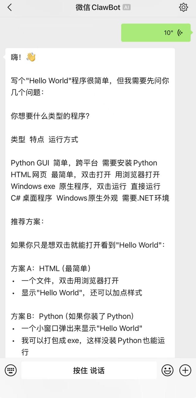 最关键的是,在使用微信和QClaw沟通的过程中,我并没有打字,而是使用语音功能。