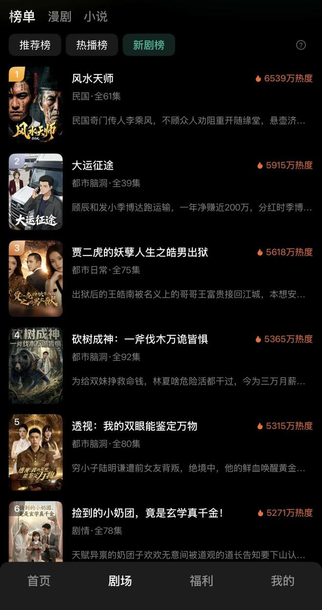从滑动推荐的首页,到分列榜单、漫剧、小说等类目的剧场页,再到延续“看短剧赚金币”玩法的福利页,红果漫剧的基本框架几乎和红果短剧如出一辙,只是少了承载电商场景的商城页。