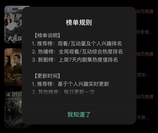 热播千榜就比较有趣了,它会统计全站热度排名Top999的作品,但并不像同行那样显示一个以百万乃至千万计的热度值,而是改为呈现热度影响力,即内容播放热度占热播千榜整体热度池的百分比。