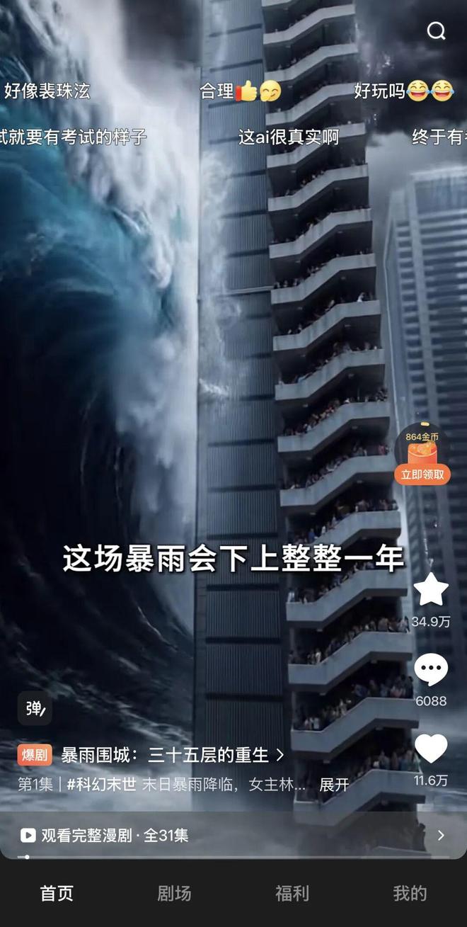 首先,其首页推荐流主打漫剧作品,很大比例是AI仿真人漫剧。 也就是说,除非用户主动搜索,否则端内流量主要都会涌向漫剧内容。
