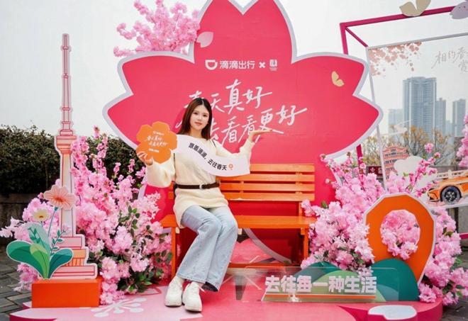 滴滴在多地发放赏花地图,在武汉天河机场设置赏花氛围引导