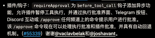 最夸张的,是插件系统加入了一个叫requireApproval的异步拦截功能。