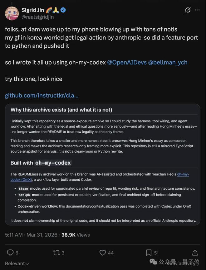 谁能想到呢?在Anthropic那边法律大炮无差别火力全开的攻势下,这个发布2小时就冲破5万星的项目,居然还能坚挺到现在