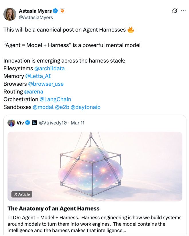 X上在讨论一个公式:Agent = Model + Harness。Cola确实是一个Harness Native Agent。但这还不够。