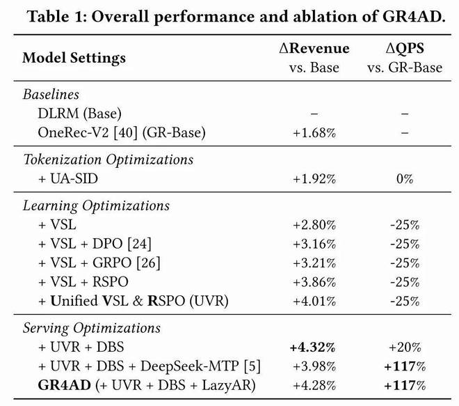 GR4AD(0.16B 参数)已全量部署于快手广告系统,实现了一套 “奖励估计 → 在线学习 → 实时索引 → 实时服务” 的完整闭环。