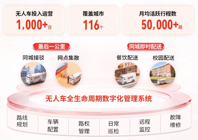 2025年之前,无人配送在很多人的印象里还是“试点”“示范”“概念”。但2025年的顺丰同城,让这个概念变成了规模。截至2025年末,顺丰同城的无人车网络已覆盖全国116个城市,运营车辆规模超1000台,月均活跃行程超5万趟。