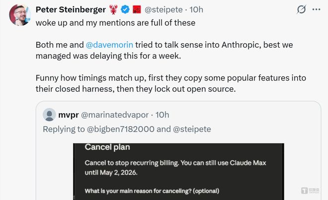 “先是将一些流行的功能复制到他们的封闭框架中,然后又将开源软件拒之门外。时间点真是巧合。”Steinberger在X上措辞克制,但话语之间情绪清晰可见。