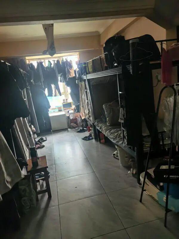 推开其中一户虚掩的房门,屋内景象让人咋舌:原本规整的空间被硬生生分割成多个狭小隔间,密密麻麻的高低床占据了大部分区域,晾衣绳横七竖八地拉在房间各处,衣物随意悬挂;地面上堆满了快递盒、生活垃圾和杂物,杂乱不堪,连下脚都略显吃力。更让人担忧的是,墙脚的插线板上插满了各类充电器,电线缠绕交错、杂乱无章,毫无安全防护措施,一旦短路引发火灾,后果不堪设想。