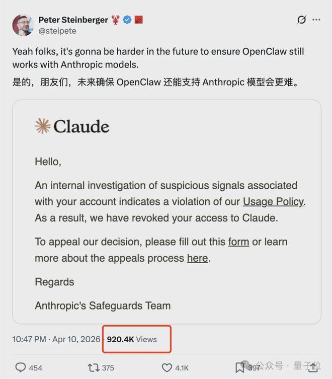 龙虾之父Claude账号被封!近百万人围观:故意的