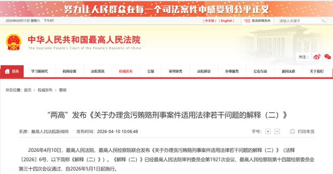 2026年4月10日,一个让中国医药行业从业者集体失眠的文件落地。最高人民法院、最高人民检察院联合发布《关于办理贪污贿赂刑事案件适用法律若干问题的解释(二)》(法释〔2026〕6号,以下简称《解释(二)》),并将于2026年5月1日起正式施行。
