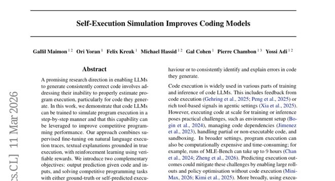这项由Meta公司FAIR团队、希伯来大学和法国Inria研究所共同完成的研究,于2026年4月发表,有兴趣深入了解的读者可以通过arXiv:2604.03253v1查询完整论文。研究团队首次让AI学会了"想象"代码运行的过程,就像让那个只会背菜谱的厨师终于能够在脑海中模拟整个烹饪过程。