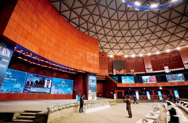 4月11日,巴基斯坦伊斯兰堡的美伊谈判新闻中心内部。图/新华