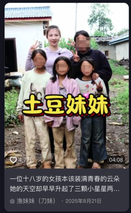 B太在视频中介绍,他最初刷到阿吉的账号,视频里18岁的阿吉带着两个妹妹、一个侄女,在破旧的房屋里劳作,声称自己的哥哥早已去世,母亲离家出走,父亲重病缠身丧失劳动能力,四人挤在一张1.2米宽的小床上,靠种土豆、玉米勉强维生,日子过得捉襟见肘。