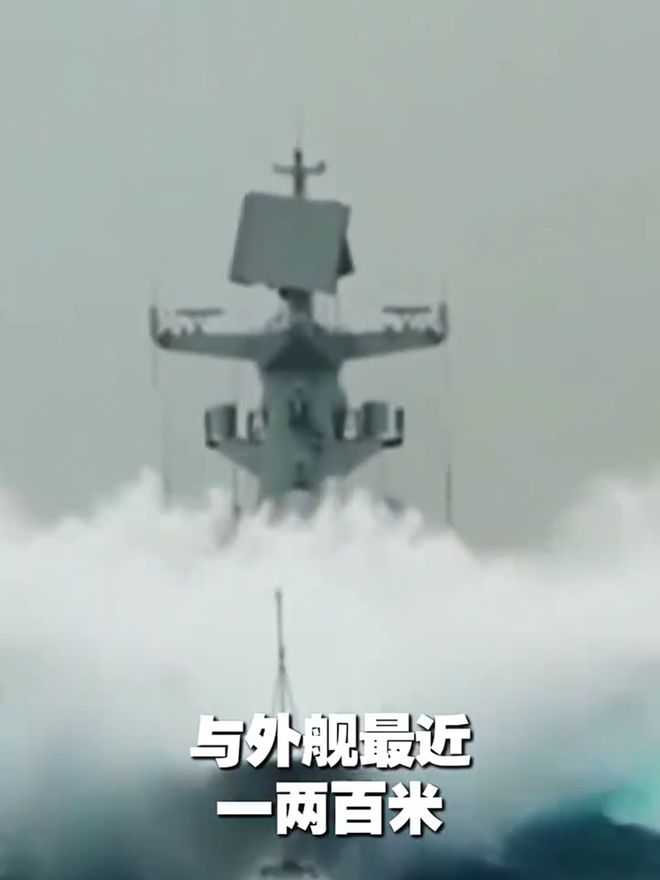 据悉,当日风浪较大,我军舰与外舰最近距离仅一两百米。