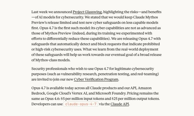 Anthropic 称尝试了多种方法降低 Opus 4.7 的网络安全能力