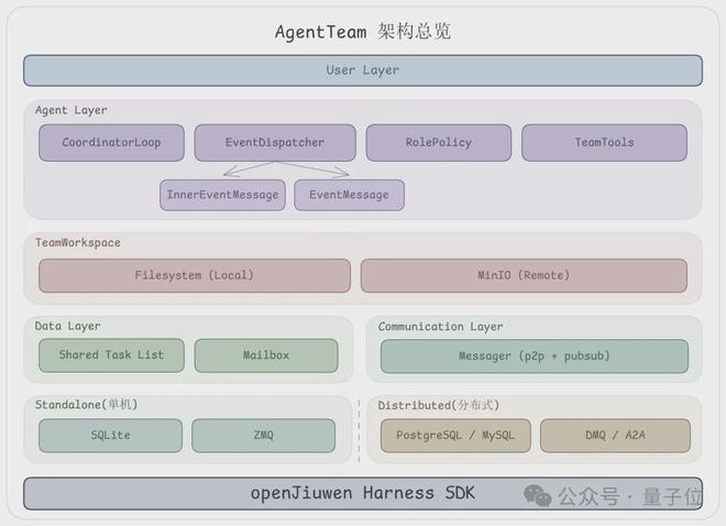 JiuwenClaw AgentTeam的能力并非空中楼阁,其背后是openJiuwen开源框架中的AgentTeam协同层