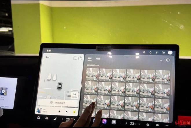 红星新闻记者通过陈女士车辆的屏幕查看,在车机相册内,显示日期“2026年2月5日”下有30余张照片,均为该车在4S店展厅内向外拍摄的图片。在另一文件夹内还包括2段视频,清晰记录下顾客体验乘坐该车时的声音。在该车“行车记录仪”文件夹内,存储了该车2月6日不同摄像头拍摄的多张照片,同样显示该车位于4S店展厅内。