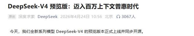 而DeepSeek V4的出现就解决了这个问题,它既有长上下文需求,又有复杂推理需求,还会被大量开发者和企业调用。如果国产芯片能在这样的模型上跑出稳定表现,肯定会比单纯公布硬件规格更有说服力,同时也能证明基于国产芯片深度适配后的国产模型,在性能和性价比上依然能够跻身全球前列。