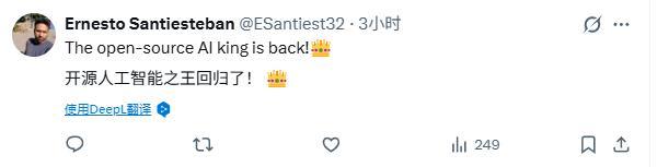有外国网友直接在底下留言:开源人工智能之王回归了。