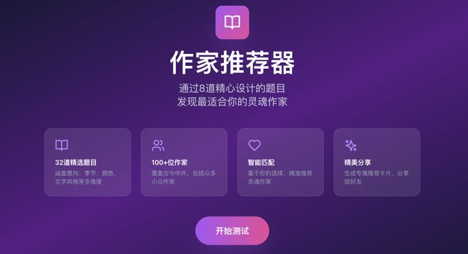 秒悟是阿里巴巴ATH事业群于将近10天前发布的AI开发平台,让0代码能力的用户能使用自然语言完成自己的产品开发。刚上线时,我让秒悟做了一个《作家推荐器》,通过给用户做8道选择题判断TA可能喜欢的作家,题库一共30道,覆盖100位作家。经过大概1个小时的调试后,这个测试小网页上线了: