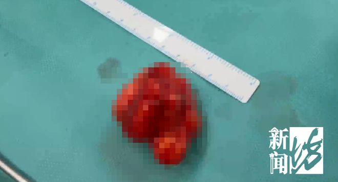 最终,历时三小时,这枚6.6乘3.5乘3厘米的畸胎瘤被分为两块,完整切除。术后5天,小亮几乎完全恢复了。