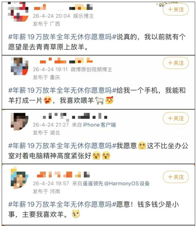 有网友表示,工作环境是美丽的草原,还有动物相伴,这样“简单纯粹”的工作当然愿意↓